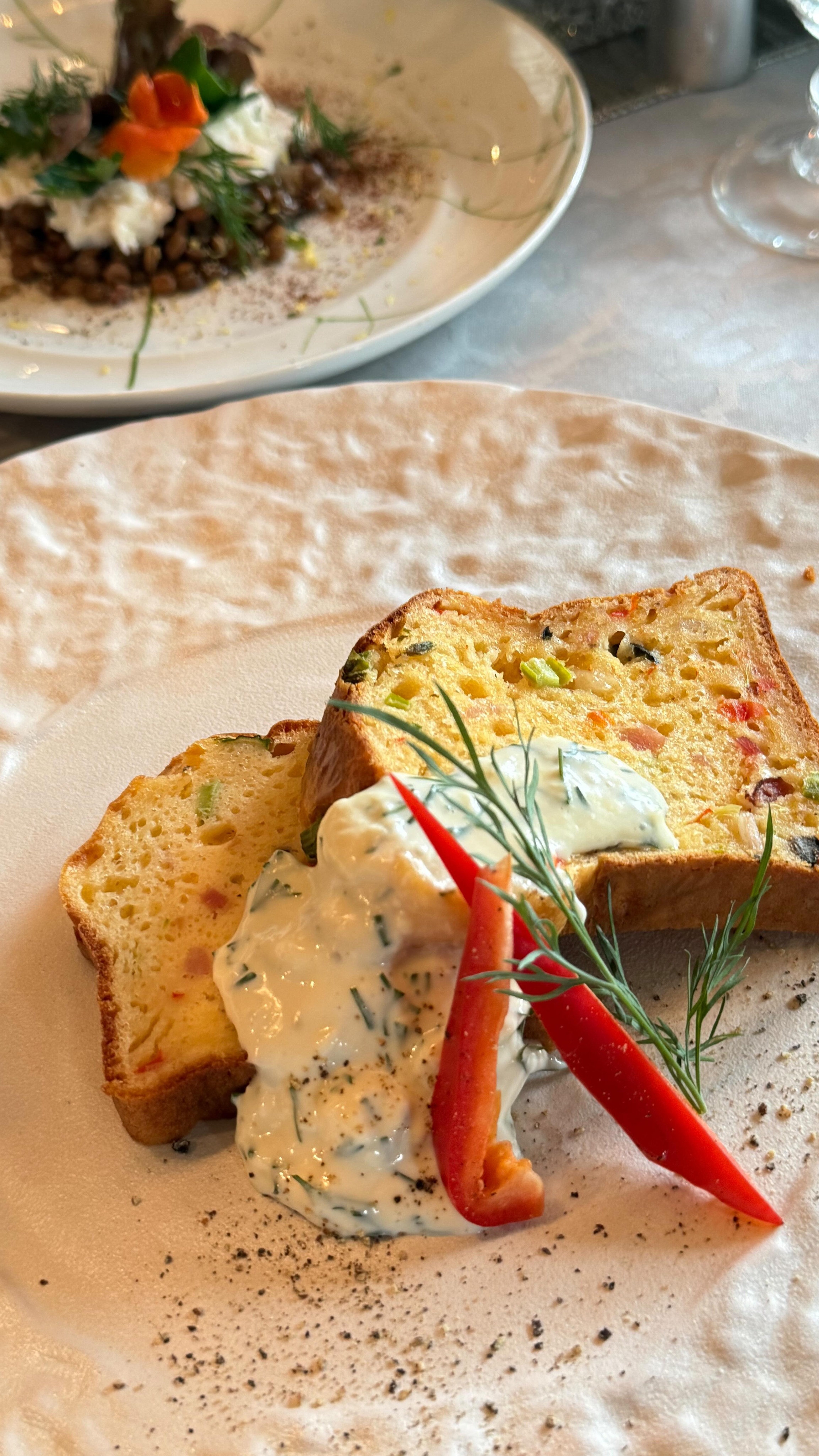 アミューズに立派な佐島のヒラメ上にはトマトのあっさりしたトッピング、下にはブロッコリーソースと