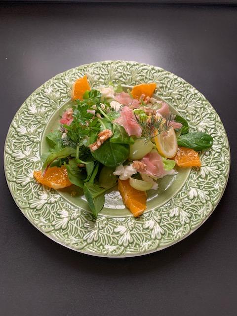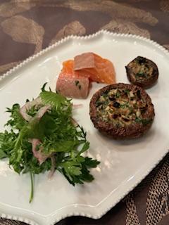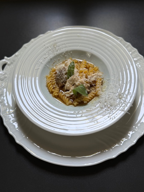 その1。アルチェネロ・グルテンフリーパスタ料理(パスタお土産つき)鱈の香草パン粉揚げ焼き、アグロドルチェ、スペインソパ・デ・アホ・(14日はアグロドルチェ無、椎茸の香草焼き)